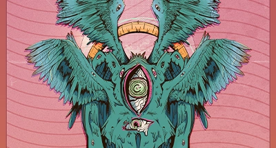 A stylistic, absurdism take on the age old "biblical accurate angel". With melting eyes, wispy thin line-art and bright coloured feathers, this artwork was one of my earlier favourites.