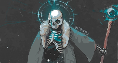 Fan-art of the first evil boss in the pixel-art game Loop-Hero, The Lich stood out to me as a being inbetween skeleton and eldritch horror, scratching multiple of my itches in character art I decided to create a "high resolution" (as opposed to pixel-art) rendition of him, with the celshaded choice being a nod to the chunkiness of pixel-art.